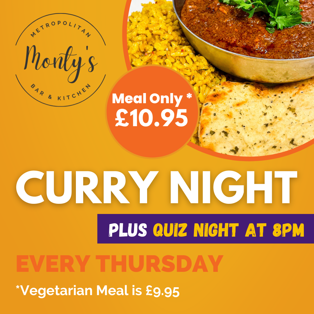 MUST BE PRE-BOOKED!9th April 2026CURRY & QUIZ NIGHT!